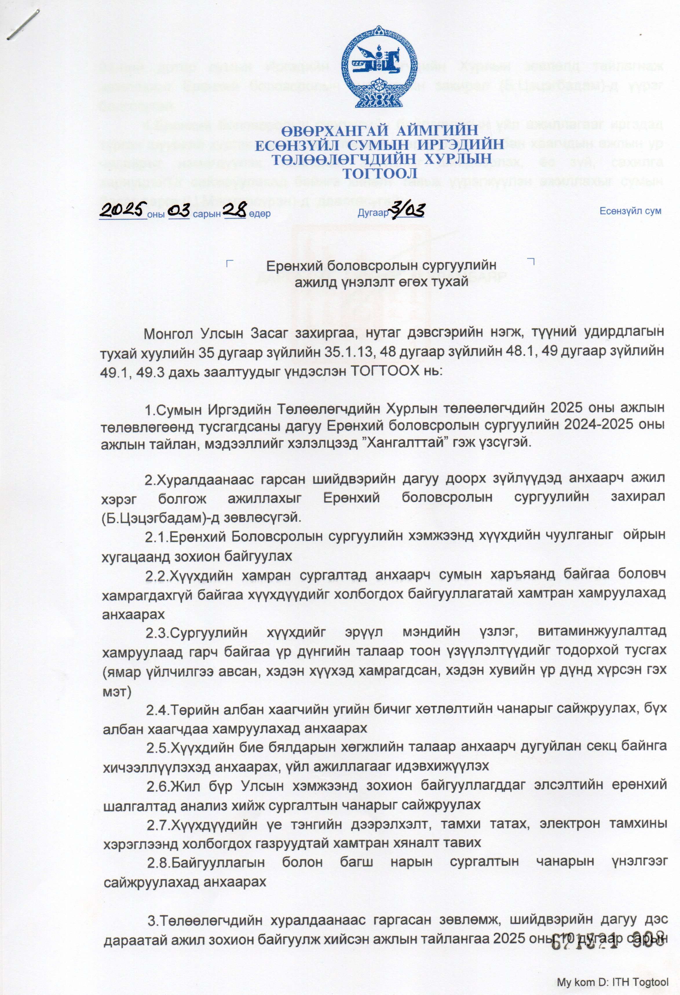 Өвөрхангай аймгийн Есөнзүйл сумын ИТХ