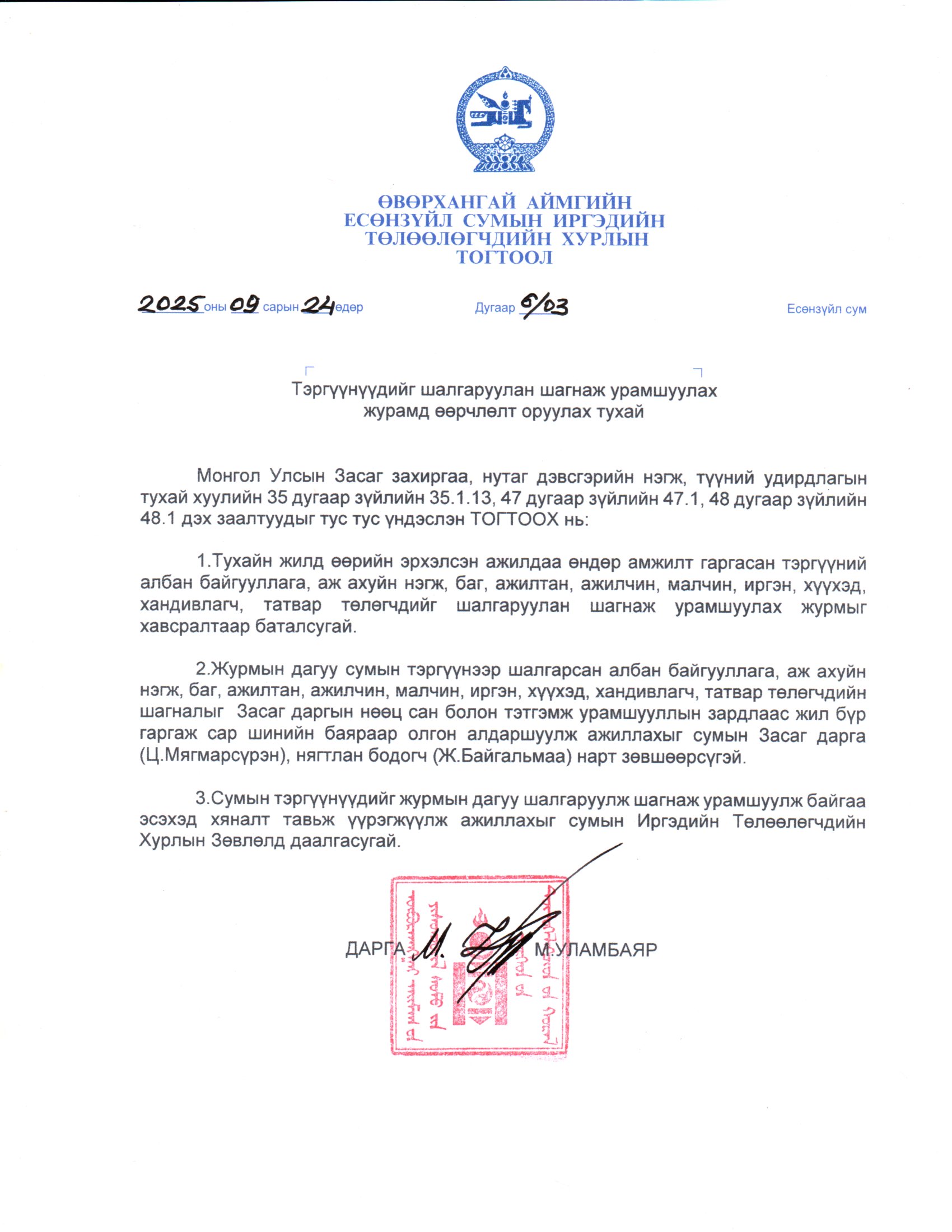 Өвөрхангай аймгийн Есөнзүйл сумын ИТХ